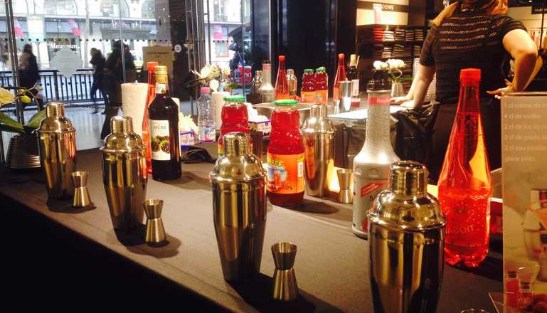 * Déroulement de l'atelier de mixologie Chaque animateur barman prend en charge un groupe de 5 à 8 invités idéalement pendant 15 à 20 minutes pour chaque cocktail réalisé. L’atelier commence par une présentation du cocktail à préparer ainsi qu’une présentation des ingrédients et matériels nécessaires. Le cocktail peut être réalisé à la cuillère, au shaker ou au verre à mélange en fonction de la recette et des demandes du client.